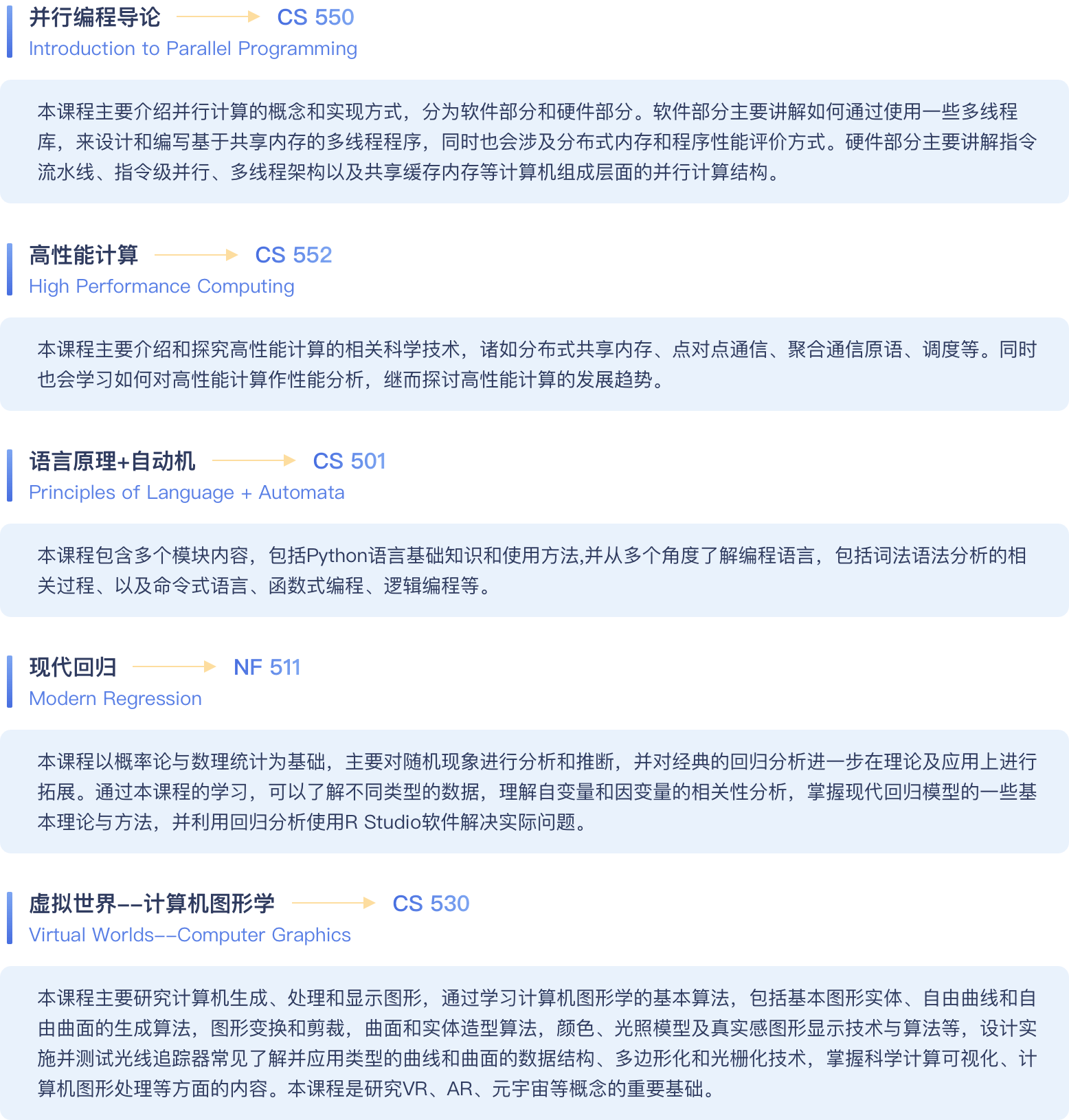每门课程需要完成不同类型的作业,包括项目提案,案例分析录音演讲、论文撰写等。