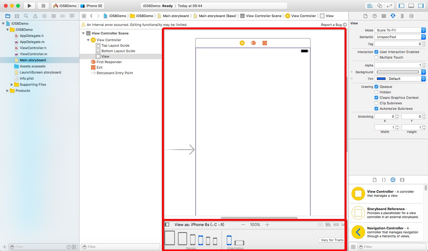 此次Xcode更新亮点之一就是关于storyboard的适配,取消了之前600*600的初始布局. 多了显示面板下边的那几个设备按钮,并且黑马程序员发现,原先在不同设备以及横竖屏的不同状态下,是需要分别进行约束,但是新版的Xcode不再那么麻烦,具体关于新版适配的教程,黑马程序员将在近期进行发布。