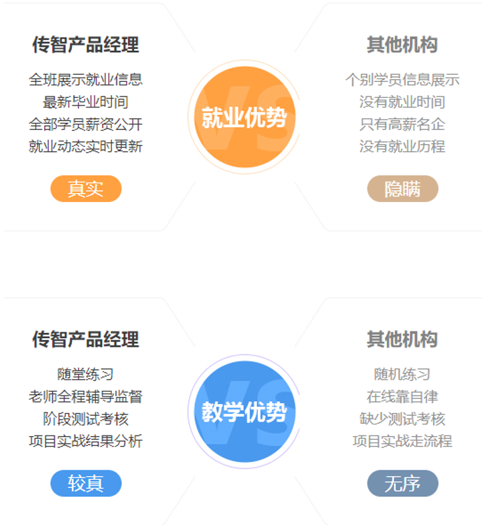 传智教育产品经理课程历经9次版本更新,已毕业学员早已走上工作岗位,从他们的真实就业数据,印证了的一次次课程的进步与完善,更加适合市场需求,学员在工作中得心应手。